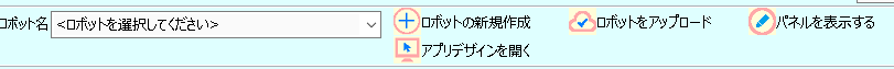 ロボデザインで開いているロボットの名前が表示されます。またプルダウン選択になっており、ロボデザインで開きたいロボットを選択します。