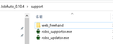本製品のトップフォルダの「support」フォルダを開きます。同フォルダ内のrobo_supportor.exeをダブルクリックして起動します。