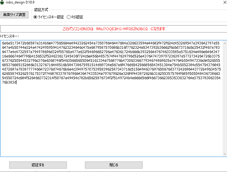 ライセンス認証されていない状態でロボデザインを起動すると、ライセンス認証画面が表示されます。