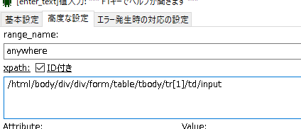 高度な設定タブのxpathへコピーしたXpathを貼り付けます。