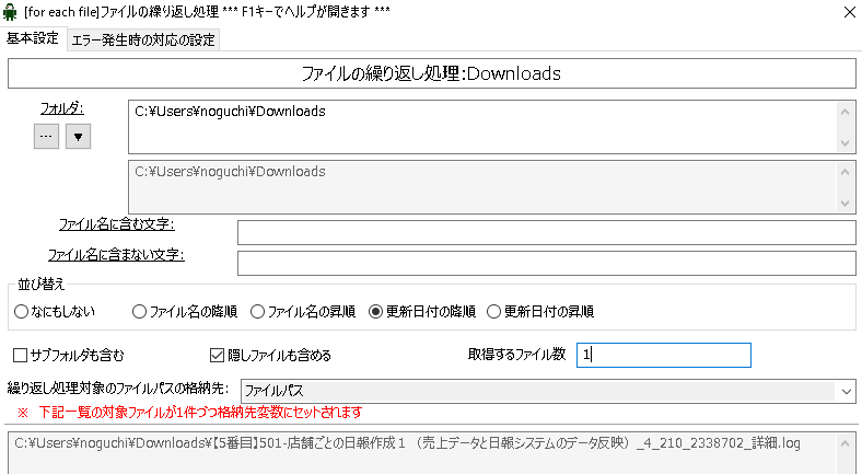 ファイルの繰り返し処理を使ってダウンロードしたファイルのパスを取得