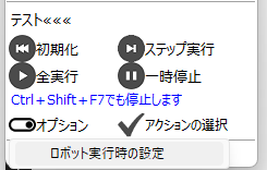 コントロールパネルのオプション~ロボット実行時の設定と開きます。